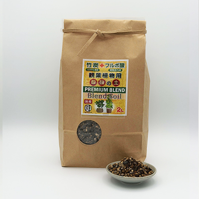 基本的な効果が認められる土を種類ごとに効果的な比率でブレンドしたものに、微生物や有機物を含んだ独自製法の培養土を加え、さらに国産竹炭&フルボ酸をプラスしたプレミアムなブレンド土です